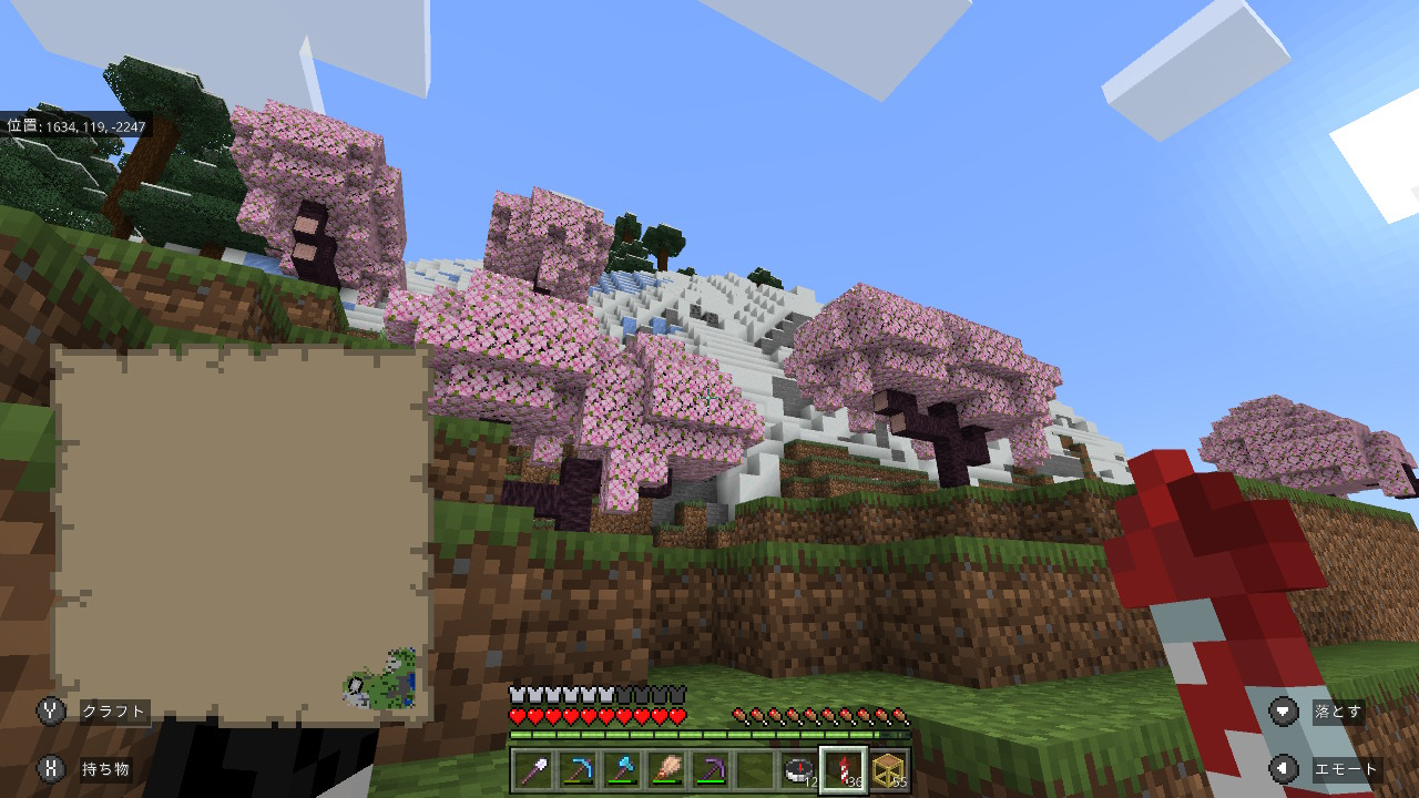 アプデ2日目でやっと見つけた桜バイオーム。めちゃ狭い…